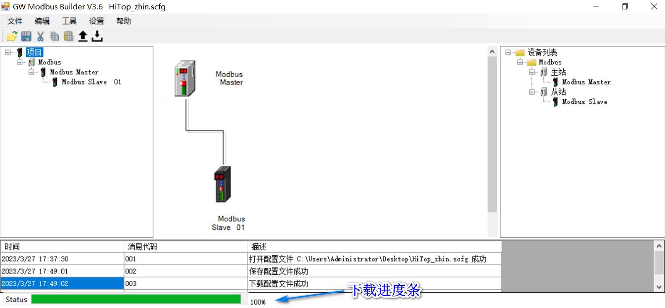 下载过程会有进度条提示,进度条到100%代表下载成功,如下图所示: