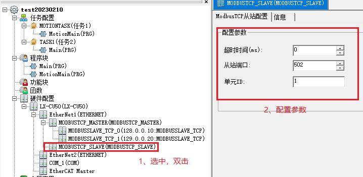 设置利时LX-CU500PLC的地址,本文设置为192.168.1.55,端口号默认为502,站地址为1。如下图所示: