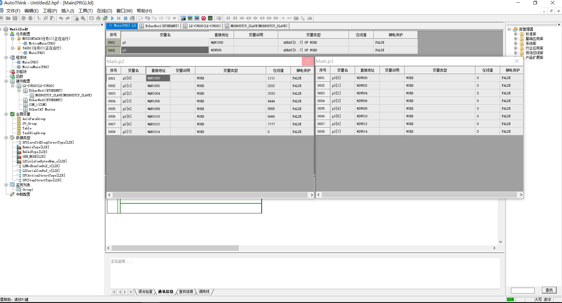 PLC编程软件LX-CU500切换到监控器模式,找到变量表进行监控,如下图所示:
