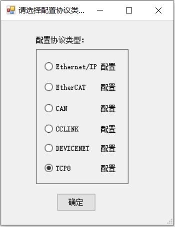 在协议选择框中选择“TCP8配置”,点击确认按钮。