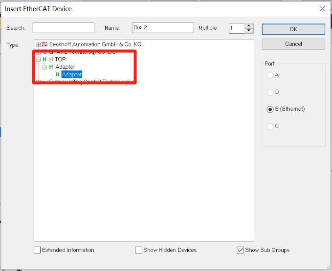 在弹出的对话框中,选择 Ethercat Master,然后点击 OK。