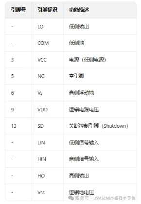 采用宽体 SOP - 16(W)封装,相较于 IR2110 的 14 引脚 PDIP 封装,在空间利用上更加高效,更适合现代电子产品小型化、集成化的发展趋势。同时,JSM2110STR 内部集成了高低侧 shutdown 逻辑,可用于故障条件下的通断关断,大大提高了芯片的集成度和系统的可靠性,减少了外部电路的设计复杂度和元件数量。
