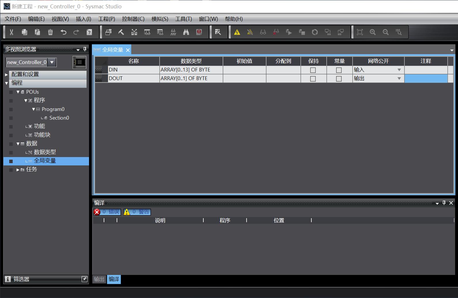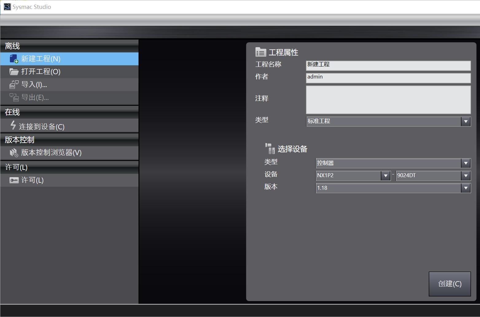 使用欧姆龙的Sysmac Studio软件打开或创建一个新项目。