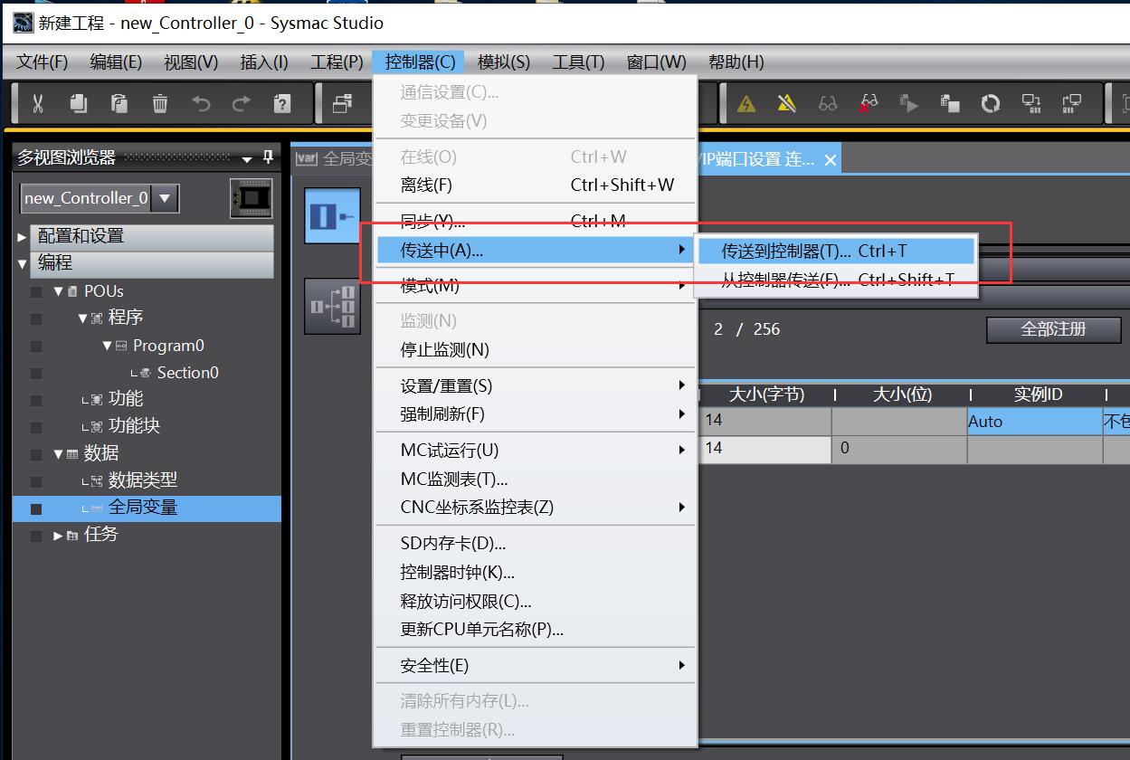 在Sysmac Studio软件中,将配置好的项目下载到欧姆龙PLC中。