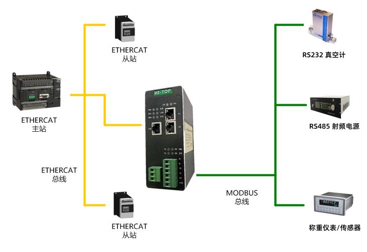 HT3S-ECS-MDN网关能够快速将称重传感器的数据转换为EtherCAT协议,实现数据的实时传输。