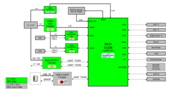 - 提供RMII接口,可弹性对接车用以太网和工业用以太网的开发板,实现车用网络开发;