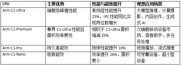 - Arm C1-Premium:专为次旗舰市场打造,可提供一流的面积效率