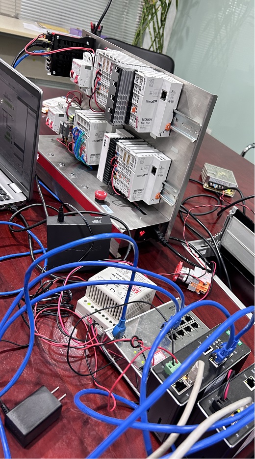 本次测试实现了倍福C6015控制器在ETHERCAT网络中与HT3S-ECS-MTP网关形成环网功能,收发数据正常。如果环网中有一台设备断联,不影响其他网关数据的正常通讯。