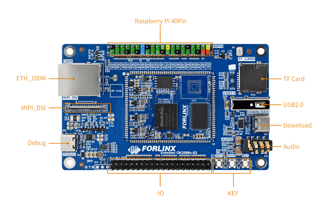 树莓派40Pin GPIO接口:兼容树莓派生态,方便连接各类传感器、执行器,降低开发门槛。