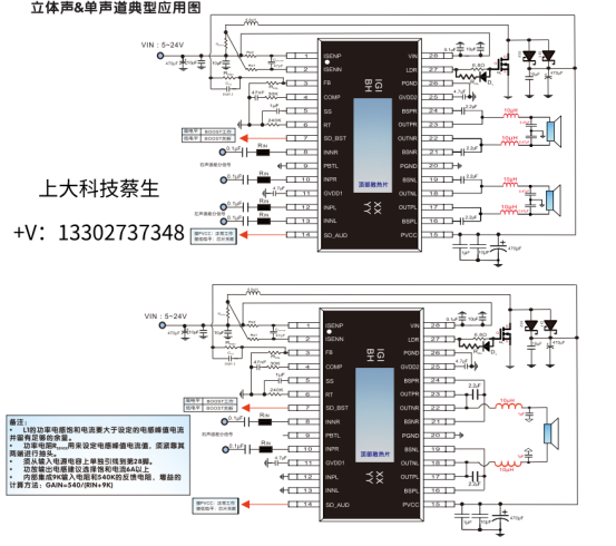 均为内置 BOOST 升压模块的 R 类音频功率放大器,支持单声道与立体声两种工作模式,能根据不同音频设备需求灵活切换。