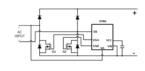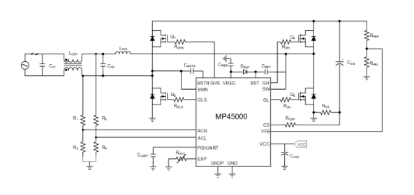 要追求可商业化的主流的高功率密度产品,功率提升至关重要。直接的方法是减少 ACDC 整流桥堆损耗,目前有两种途径,第一种是整流桥堆用 MOSFET Q1, Q2 提高效率,但性价比不高;另外一种是采用 TP-PFC,类似 MP45000 的方案,这个方案可以减少整流桥堆,市场上采用得越来越多。