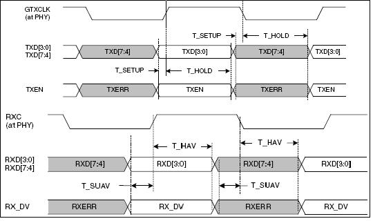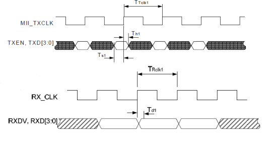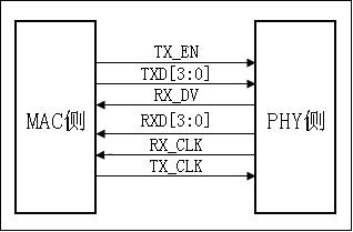 TX_EN信号线上传送TX_EN和TX_ER两种信息,在TX_CLK的上升沿发送TX_EN,下降沿发送TX_ER;同样的,RX_DV信号线上也传送RX_DV和RX_ER两种信息,在RX_CLK的上升沿发送RX_DV,下降沿发送RX_ER。