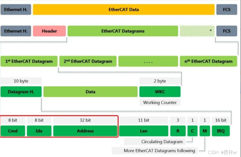 EtherCAT帧还消除了更大的协议栈,如UDP/IP或TCP/IP,这意味着EtherCAT不是一个基于IP的协议,更类似于第2层或数据链路层协议。
