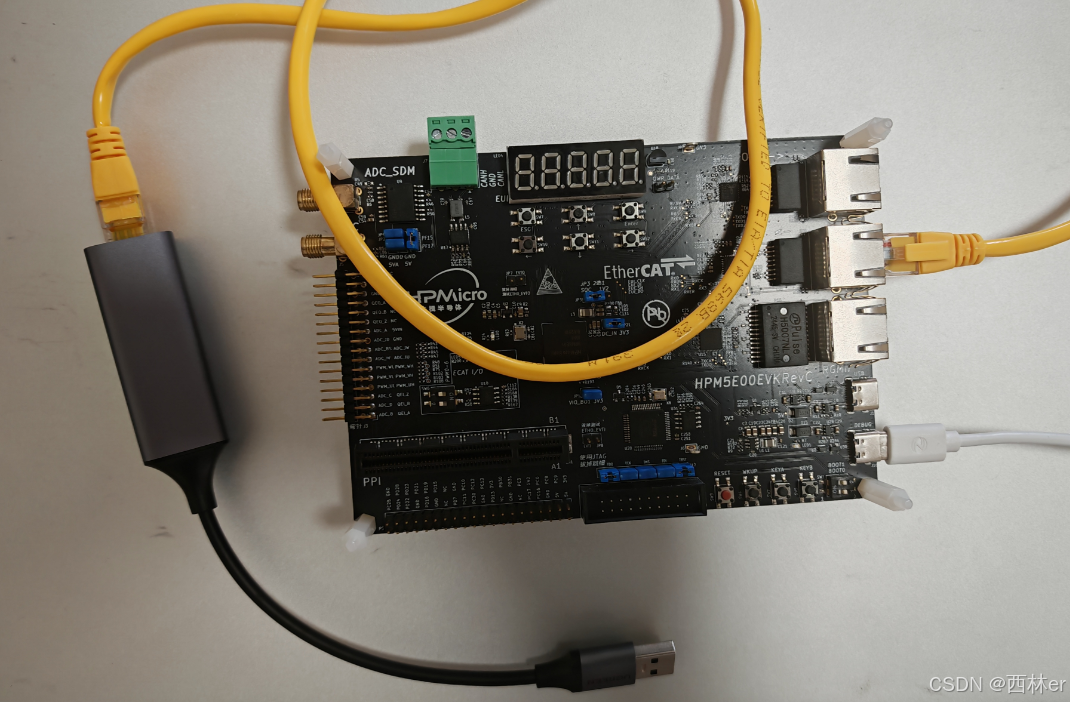 此文介绍了利用先楫半导体(hpm)官方hpm5e00_evk开发板搭建一个EtherCat通信的“Hello World”工程,主要汇总了先楫半导体实现ECAT通信的相关资料,完整的说明如何搭建软件开发与编译环境、硬件电路连接方式、实验效果。