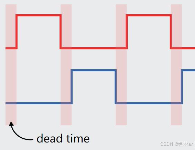 死区控制是指在电机驱动和功率放大器等应用中,为了避免MOSFET或IGBT等功率开关器件同时导通而造成短路或过电流的现象,而引入的一种保护措施。死区控制通过在两个功率开关器件之间设置一段时间延迟,使得它们不能同时导通,从而防止出现瞬态的短路或过电流。