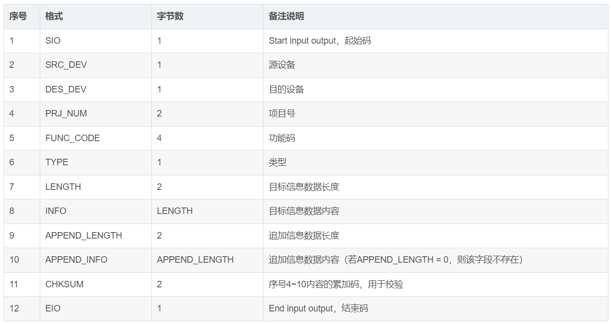 交互机制:由应用层确定协议帧的握手与重发机制,本协议暂不对此进行定义。
