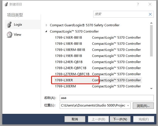 在“Type”中选择控制器的型号,在“Name”中填写项目的名称,点击OK完成创建。