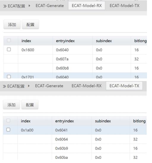 单击 ECAT-Model-RX 界面和 ECAT-Model-TX 界面,查看 PDO 表格是否为空,