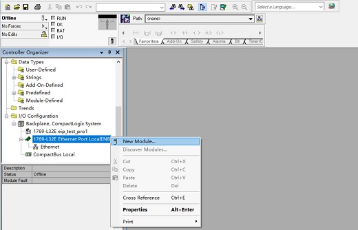 添加网关:在Controller Organizer栏中,右键点击“1769-L30ER Ethernet Port LocalENB”,选择“New Module”