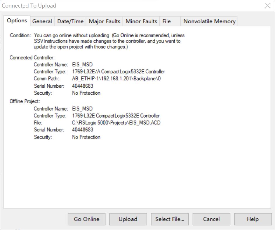 (5)下载完毕后, 在线监视数据:点击菜单Communications->Upload,在下图中点击Upload,直至上传完成。