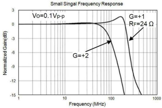 - -3dB 带宽(G=+1):150MHz - 0.1dB 平坦度(G=+2):52MHz |