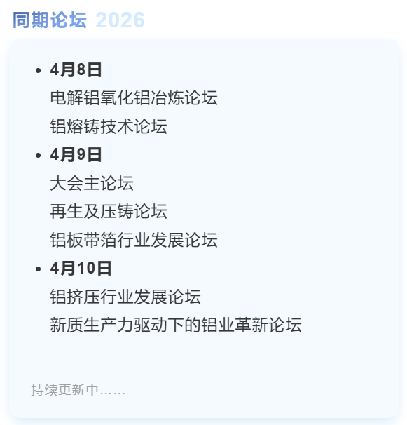 七大垂直论坛覆盖铝全产业链,将深度解构铝全产业链升级路径,涵盖原料、熔铸、再生压铸、板带箔、挤压等关键环节,更是新增“新质生产力革新论坛”,为全球化突围提供实战工具箱。与全球铝业共赴一场“技术立标、通海共赢”的革新之旅!