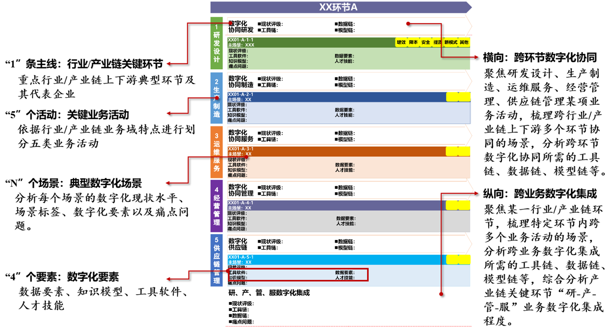 场景化、图谱化推进重点行业数字化转型以场景为主要切入点,以行业数字化转型场景图谱为路线图,以数字化要素清单为数字化攻关重点。其中:
