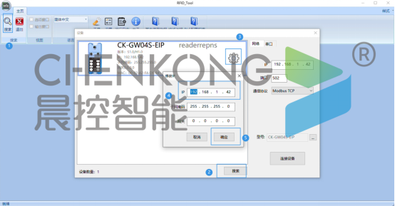 l点击搜索出来的设备上的齿轮按钮,修改ip。