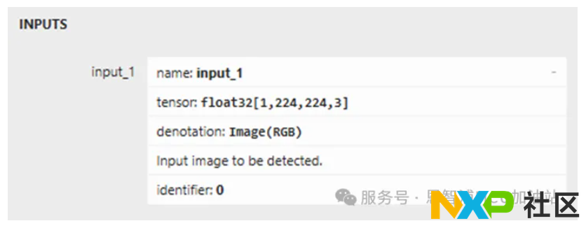 - 输入:224×224 大小的 RGB 图像(需根据第一步的位置框裁剪、缩放,适配 RT700 的图像预处理能力)。