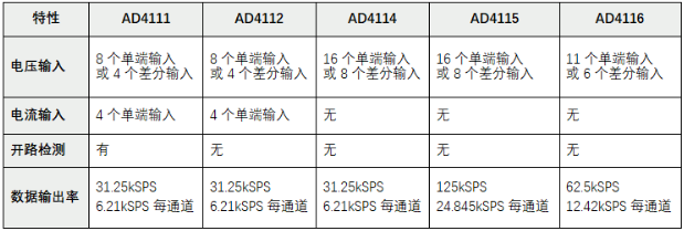 - AD4111/AD4112/AD4114/AD4115各个器件的差别: