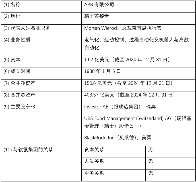 SoftBank Group Corp.(下称“软银集团”或“软银”)宣布,已于2025年10月8日(中欧时间)与全球电气化*1和自动化技术领导者ABB有限公司(“ABB”)签订最终协议,将以总计53.75亿美元(约合8,088亿日元*2)的价格收购ABB的机器人业务(下称“本次收购”)。