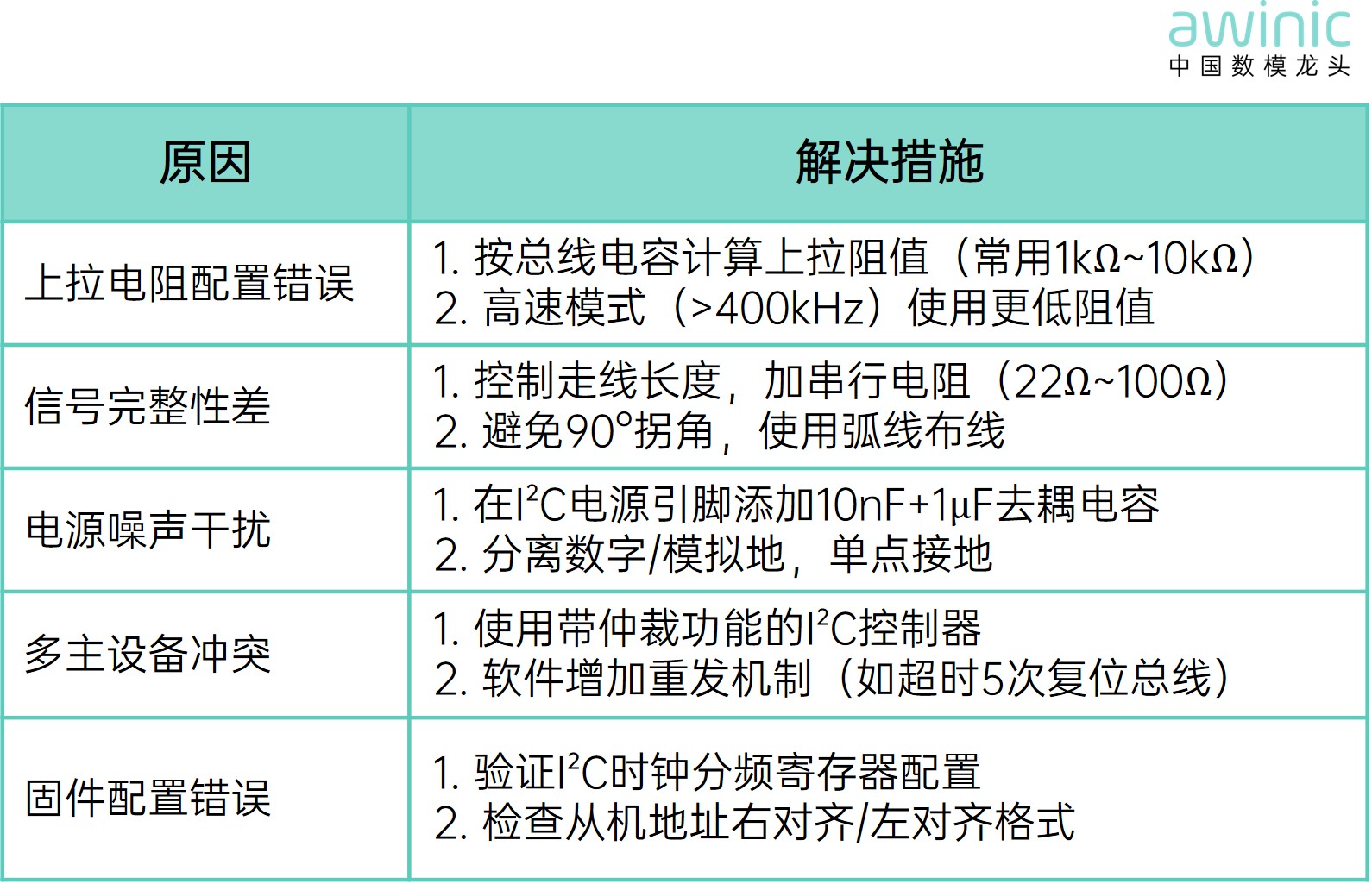 - 针对各类产品具有完善的应用方案设计指导与checklist,为产品设计初期提供有效的建议,进而从产品设计源头避免I²C不通问题的发生