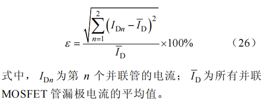 表 3 列出了两个并联管在静态、开通与关断不同时刻的电流瞬时值 ID1与 ID2 ,根据电流不平衡度的计算公式,可以求出系统电流的不平衡度小于 3%。