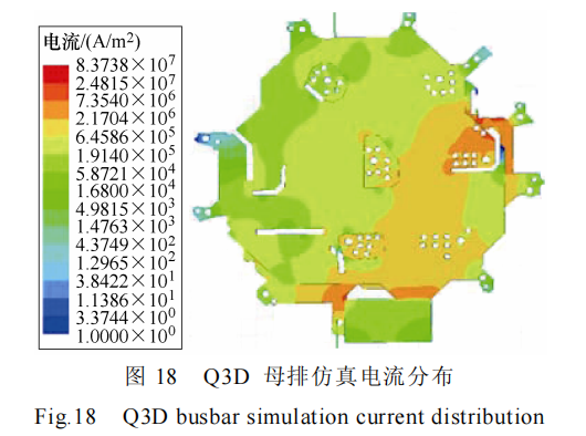 为了验证实验测量 PCB 母排杂散电感的正确性,通过 Ansys Q3D 对叠层母排进行了仿真。PCB母排在 Q3D 中的仿真电流分布如图 18 所示。仿真中,使用 10 MHz 的交流电源进行分析,最终获得的主回路总寄生电感值为 30 nH。通过表 2 里的数据对比,可以发现两种不同的提取方式产生的母排的电感值存在一定的偏差,但在误差范围内。