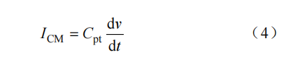 在电源中,使用变压器通过磁场传输电源能量。变压器的输入与输出之间存在寄生电容。在该电容Cpt 两端出现的高 d /d v t 将在高电压功率转换器侧和低电压控制器侧之间产生位移电流 ICM ,即