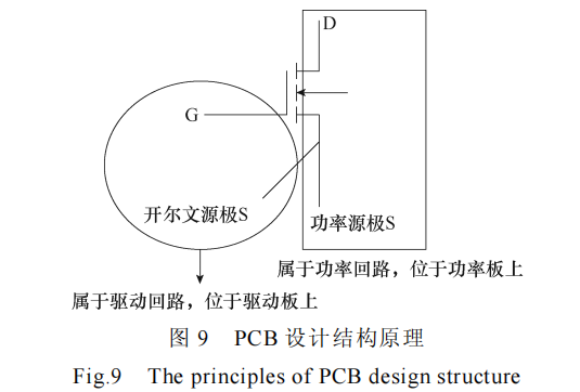 为了减小门极驱动环与功率环之间的耦合与影响,将门极回路与功率回路分别放在了不同的 PCB上。PCB 设计结构原理如图 9 所示,SiC MOSFET的门极 G 与开尔文源极 S 焊接在驱动板上,漏极 D与功率源极 S 通过驱动板上的无电气连接的通孔单独焊接到下层的功率板上。