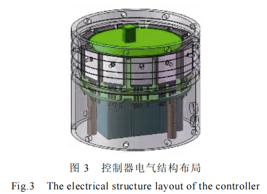 为了从电气和散热角度最大程度地提升材料和空间利用率,整个系统实现了功率模块、驱动电路、电容与母排的协同设计。直流侧支撑电容采用多只并联形式,焊接在功率板上,通过覆铜层连接到各个并联功率模块的相应管脚上,以减小等效电感和等效电阻;功率板与电机三相交流输出端采用铜柱连接,实现电气和机械结构复用,同时起到支撑电路板的作用;为了节省空间,采用了 PCB 级电流传感器,且传感器位于功率板上;功率模块均匀布置于圆筒形铝壳内壁加工出的凸台上,通过螺钉与安装面固定并进行散热。最终设计的分立器件的高功率密度控制器的电气结构布局如图 3 所示。控制电路板、驱动电路板和功率电路板均设置为了圆形,控制板的直径只有 72 mm,驱动板与功率板直径相同,均为 88 mm,高功率密度的电路板增强了整个电子系统的集成度,最终提升了控制器的效率。