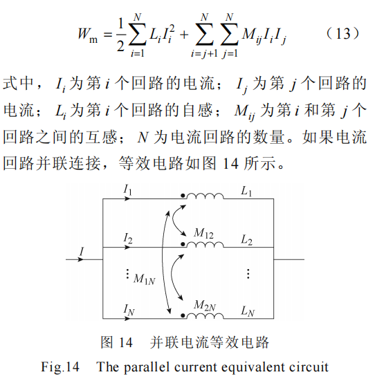 对于由多个并联电流回路组成的系统,每个回路中都有自感磁能,电流回路之间也有互感磁能。总磁能Wm 为