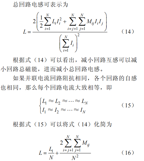 因此,并联电流回路上的电感可以通过减小互感来减小总回路上的电感,当并联回路相邻回路电流方向相反时,电感会随着回路数的增多而降低。