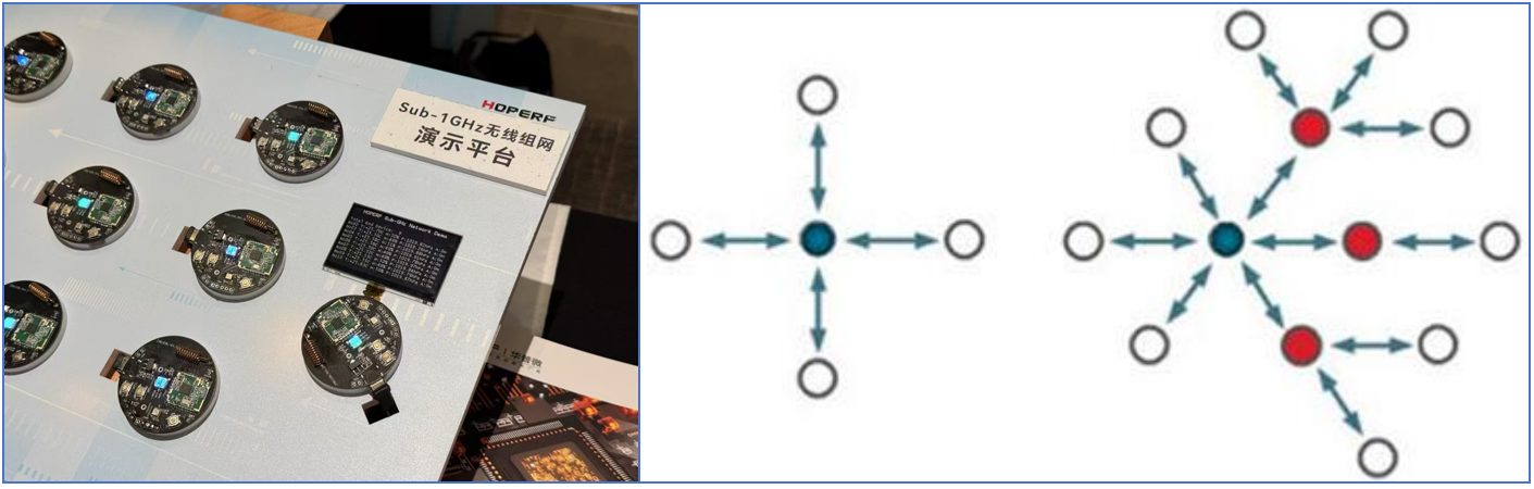 Sub-GHz无线组网演示平台是基于华普微自主研发的SoC射频收发模块搭建的轻量化星型网络(一个中心节点、9个终端节点),终端节点可与控制中心进行实时的双向通信,且还可根据实际需求被配置为“工作”模式(保持活跃状态)或“休眠”模式(需要传输时短暂唤醒),适用于烟雾报警器、气象监测站及其他需要持续监控的组网场景。