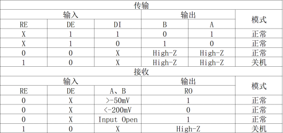 当DE为低电平、RE为低电平时,器件切换至接收模式,将总线上的差分信号转换为单端信号从RO引脚输出,并具备输入开路故障安全功能;
