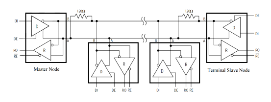 半双工RS485网络:半双工RS-485网络是一种采用一对差分信号线(A和B)进行数据传输的多节点通信系统,其核心特点是所有设备共享同一总线,依靠协议协调,在任何时刻只能有一个设备作为发送方,其余设备作为接收方,XBLW MAX485支持多达256节点总线连接,从而实现稳定、抗干扰、低成本的多点通信。