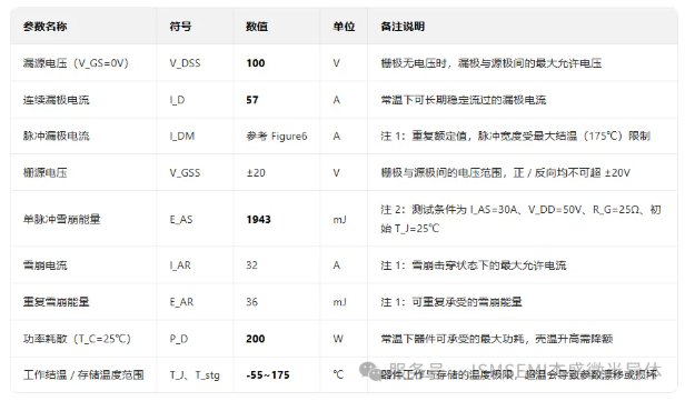 在电源开关过程中,MOSFET 常面临雪崩击穿风险,一旦器件抗雪崩能力不足,极易导致永久性损坏。杰盛微 JSM57N10C 通过了100% 雪崩测试,单脉冲雪崩能量(E_AS)高达 1943mJ,重复雪崩能量(E_AR)达 36mJ,雪崩电流(I_AR)稳定在 32A()。对比 IRFR3410(单脉冲雪崩能量约 500mJ),JSM57N10C 的抗冲击能力提升近 4 倍,即使在突发电压波动场景下,也能保障系统稳定运行。