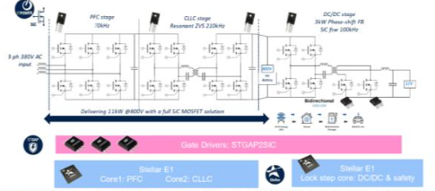 致力于亚太地区市场的国际领先半导体元器件分销商---大联大控股宣布,其旗下友尚推出基于意法半导体(ST)Stellar E1系列MCU、STGAP2SIC单栅极驱动器以及使用ST Gen3的1200V碳化硅MOSFET所设计的11KW AC/DC高压电源和3KW DC/DC高压转低压系统方案。