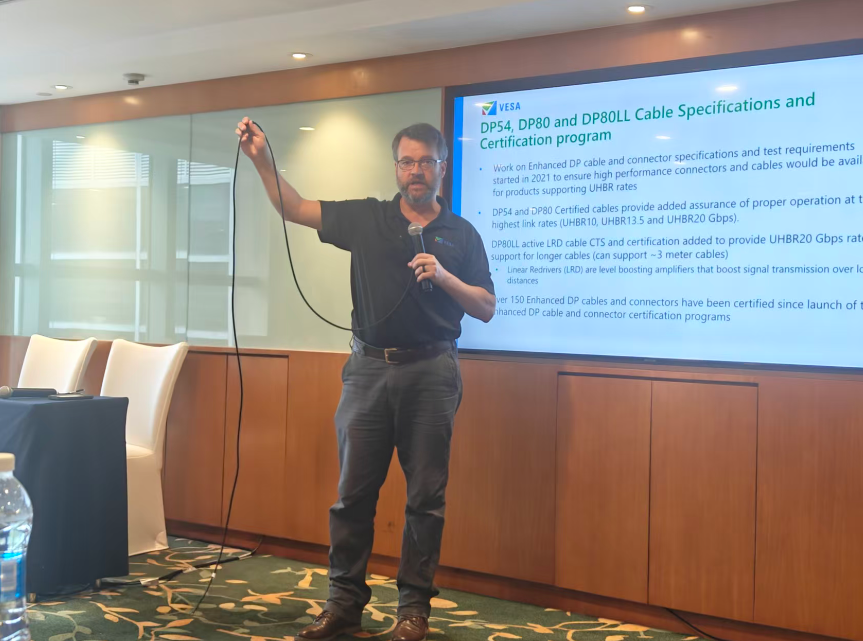 VESA在2025年5月于圣何塞会议中心举行的显示周博览会上,展示了联发科及其他成员使用全新CTS C模型验证DP AE标准的FPGA平台演示。