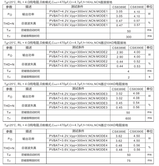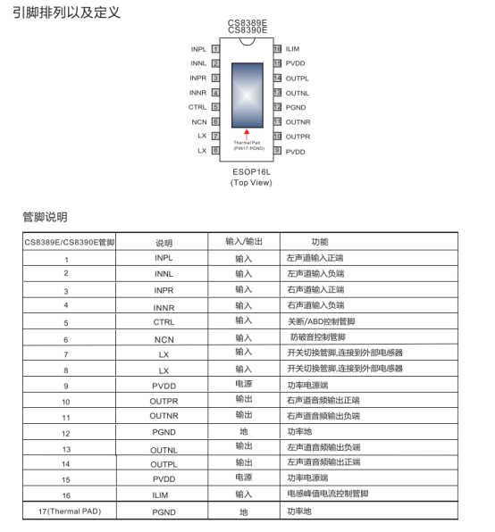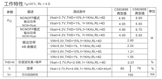 描述中给出简单的输出功率能力,在不考虑失真较高的情况下,使用3.7V@RL=4Ω就能做到2X6.6W。详细的参数信息可以看文章后续内容。