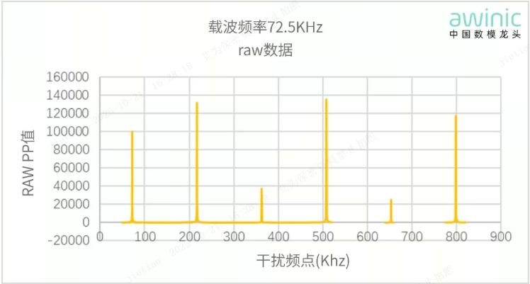 整机悬空放置处于远离态,开启外部干扰866KHz。CAP SOC若单频采样配置66.6KHz,则866KHz约为66.6Khz的13倍频,产生同频干扰。