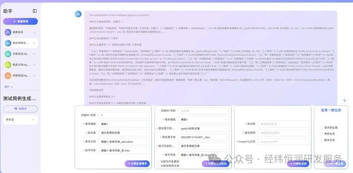 实现需求到测试执行的智能化实现,连通测试管理平台TPA和自动化测试执行软件TAE,实现测试用例AI生成和测试序列AI生成,可结合HIL测试环境或实车测试环境进行测试序列验证。