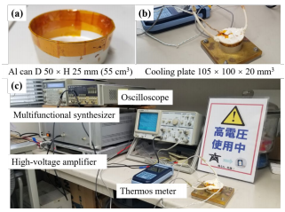 图1:场冷极化装置:(a)金属Al制容器;(b)金属冷却盘