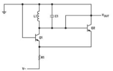 不同于采用单个晶体管的Clapp、Colpitts和Hartley振荡器,Peltz配置使用两个晶体管。观察图1,注意晶体管Q1配置为共基极放大器级。由L1和C1组成的谐振电路提供集电极负载。集电极的输出馈送到晶体管Q2的基极。Q2配置为射极跟随器(共集电极)级。当射极跟随器(Q2发射极)的输出连接回Q1发射极处的共基极级输入时,形成振荡所需的正反馈。共基极放大器级的电压增益在LC谐振电路的并联谐振频率处达到最大值,此时其阻抗接近无穷大。射极跟随器的增益总是略小于1。环路周围的组合增益在谐振时将远大于1,以维持振荡。